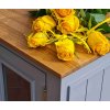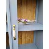 Masivní vitrína PROVENCE je vyrobena z masivního bukového dřeva a ošetřena akrylovou barvou v šedomodré barvě. Vrchní deska je vyrobená z masivního dubového dřeva a ošetřena lakem.