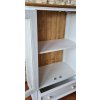 Masivní vitrína PROVENCE je spojením bukového a dubového dřeva. Dubové dřevo (horní deska) je ošetřeno lakem a borovicové dřevo je ošetřeno akrylovou barvou v bílé barvě. Šuplíky jsou bez pojezdů. Možnost objednání se systémem tichého dovírání (u šuplíků).