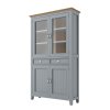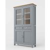 Masivní vitrína PROVENCE je vyrobena z masivního bukového dřeva a ošetřena akrylovou barvou v šedomodré barvě. Vrchní deska je vyrobená z masivního dubového dřeva a ošetřena lakem.