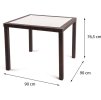 Zahradní stůl NARCIS o rozměrech 90 x 90 cm je optimální volbou pro venkovní prostředí, ať už se jedná o zahradu nebo celoroční zimní zahrady. Stůl je vybaven hliníkovým rámem a povrchem z ratanu vysoké kvality. Jeho syntetický materiál připomíná přírodní ratan, ale přináší výrazně vyšší mechanickou pevnost a odolnost vůči nepříznivým povětrnostním podmínkám, jako je vlhkost, nečistoty a UV záření. Díky hliníkové konstrukci je nábytek lehký a snadno přenosný. Stůl zaručuje pohodlnou a nenáročnou údržbu a jeho horní deska je vyrobena z tvrzeného skla o tloušťce 5 mm.